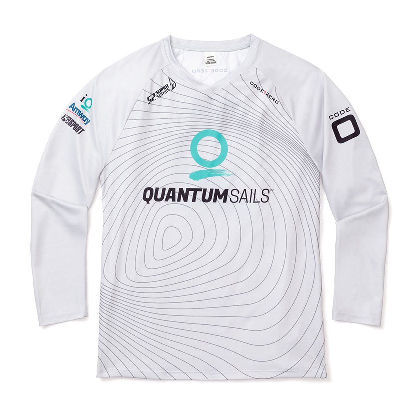 Based on the design pattern of the Quantum Racing sails, this unique tech shirt is cool and comfortable on andoff the water. The v-neck is just a subtle change from the standard round neck. Featuring logos from team sponsors and partners: Code-Zero, 52 Super Series, iQ Technology, Amway, and XS Sport. Limited edition, limited quantity.