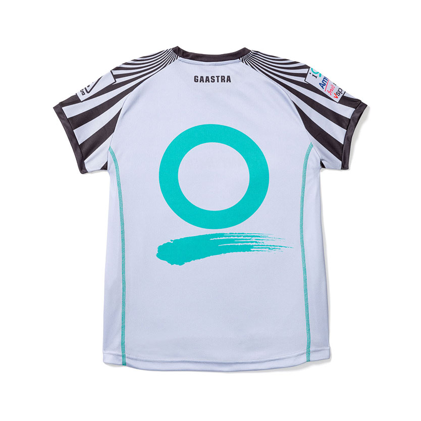 The official team jersey of the Quantum Racing team, in youth size! Silky, soft, sublimated graphics and top-quality, fast-drying Lycra mesh fabric will make this shirt a favorite to wear and be seen in. Quantum green overlock stitching details and the famous vortex on the shoulders; Gaastra Pro and 52 Super Series logos along front raglan sleeve seams, Quantum Sails logo front and center, large Q on back. On right sleeve: iQ, Amway, Bravo Systems, and Vspars logos. Gaastra logo on left sleeve. Youth sizes M and XL.